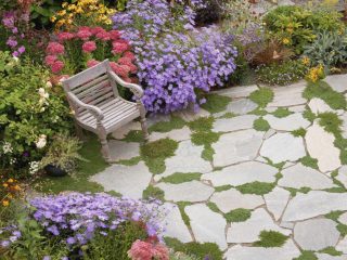 High angle view of a chair in a formal garden, Washington, USA