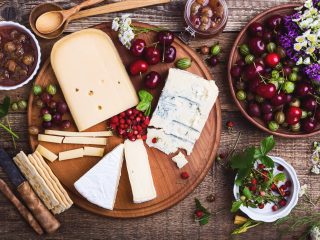 Cheese platter with fresh colorful summer berries